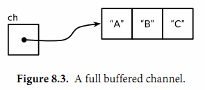 通过发送一个值到通道中来领取令牌,从通道中接收一个值来释放令牌,创建一个新的空闲槽。这保证了在没有接收操作的时候,最多同时有n个发送。(尽管使用已填充槽比令牌更直观,但使用空闲槽在创建通道缓冲区之后可以省掉填充的过程)。