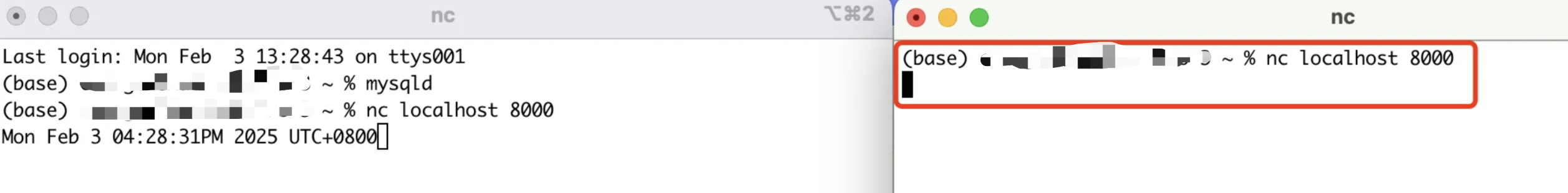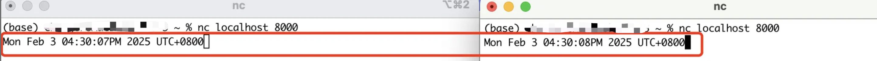 **阻塞执行(顺序编程):**服务器顺序执行,第二个nc客户端接收不到时间;